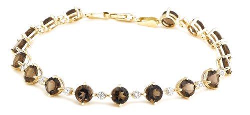 14k Yellow Gold Smoky Quartz and Diamond Tennis Bracelet, 7.25"